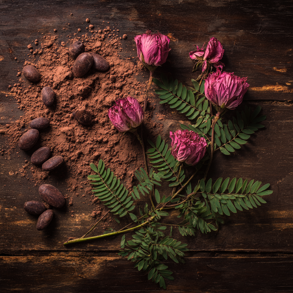 At its core, this formula combines Albizia, the “tree of happiness,” with Mucuna, a natural source of L-Dopa that gently uplifts mood. Ginkgo and Angelica improve circulation and encourage emotional flow, while Hawthorn offers steadying support for the heart. Skullcap eases tension in the nervous system, Rose comforts the spirit, and Cacao adds warmth and gentle stimulation. Together, these allies create a grounding, compassionate remedy for navigating sorrow and restoring light to the heart.